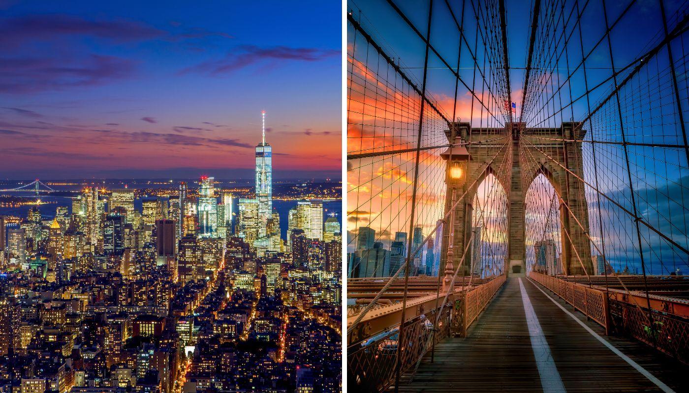 Nova York és una d'aquestes ciutats a les quals anar almenys una vegada a la vida. El ritme frenètic de Manhattan impressiona des de qualsevol angle, amb els seus esvelts gratacels que meravellen especialment al vespre. Contempla’ls mentre et submergeixes en l'ambient de la Cinquena Avinguda o barris amb personalitat com el Soho o Chinatown, o bé admira’ls des de l'icònic pont de Brooklyn. L'urbs novaiorquesa és perfecta per recórrer els seus carrers, per anar de compres, per gaudir dels seus rooftops, i fins i tot és un gran punt de partida per visitar les emblemàtiques cascades del Niàgara.